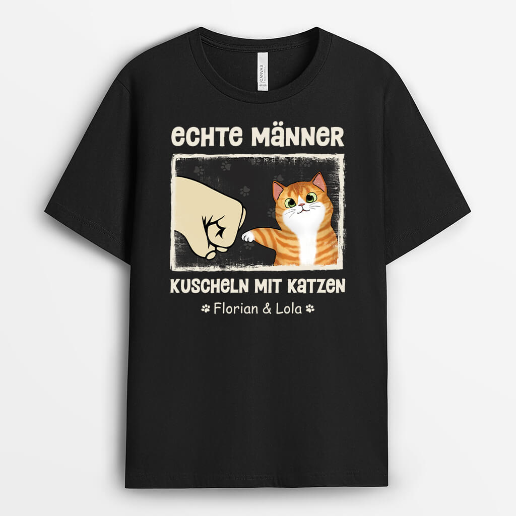 Echte Männer Kuscheln Mit Katzen - Personalisiertes Geschenk | T-Shirt für Katzenliebhaber