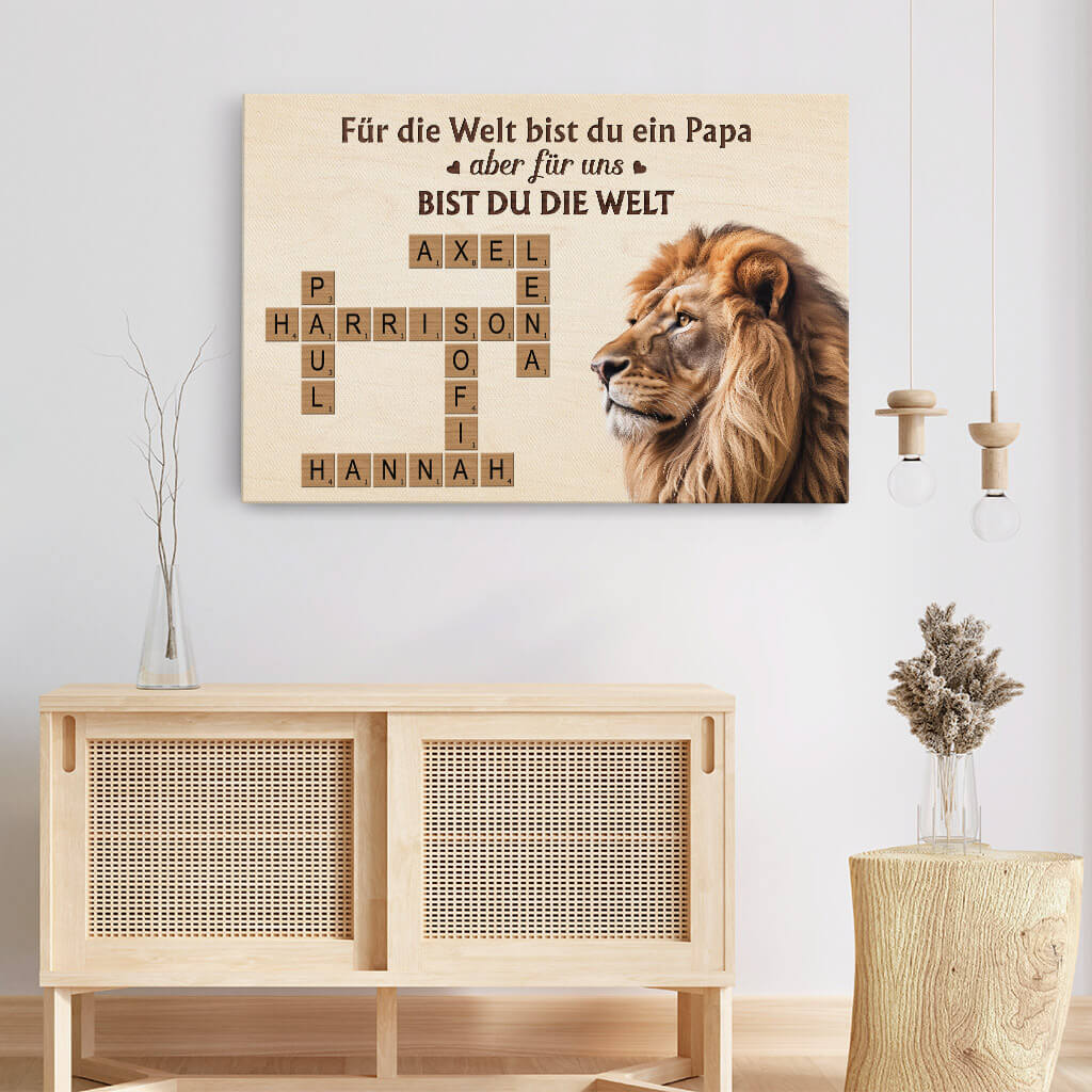 Für die Welt Bist Du Ein Papa Aber Für Uns Bist Du Die Welt Kreuzworträtsel Löwe - Personalisiertes Geschenk | Leinwand für Papas