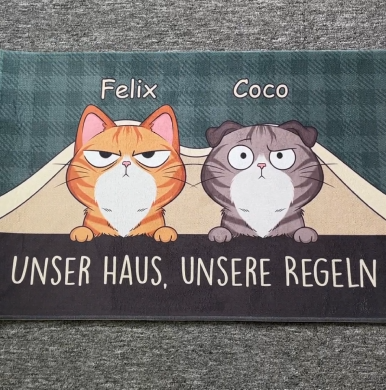 Unser Haus Unsere Regeln - Personalisiertes Geschenk | Fußmatte für Katzenliebhaber