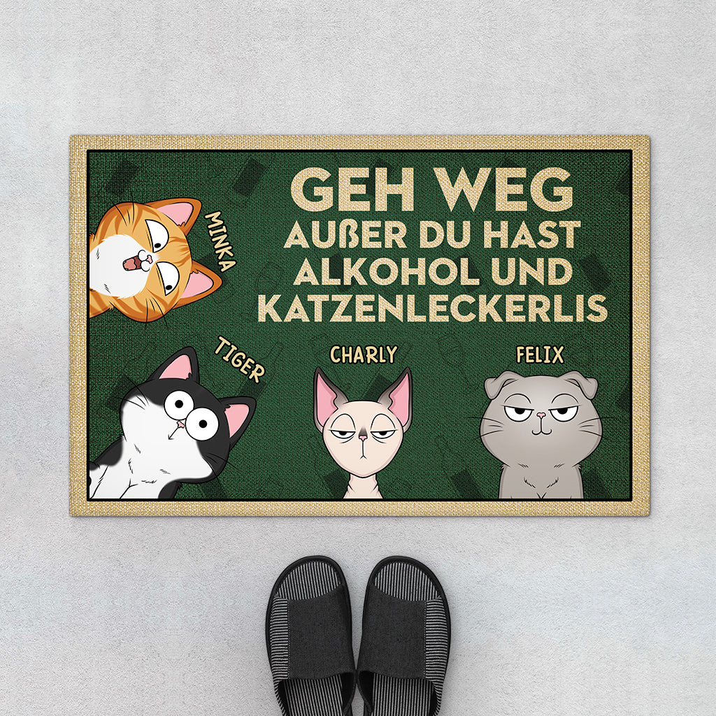 Lustiger Spruch Über Alkohol Und Katzenleckerlis - Personalisiertes Geschenk | Fußmatte Katze