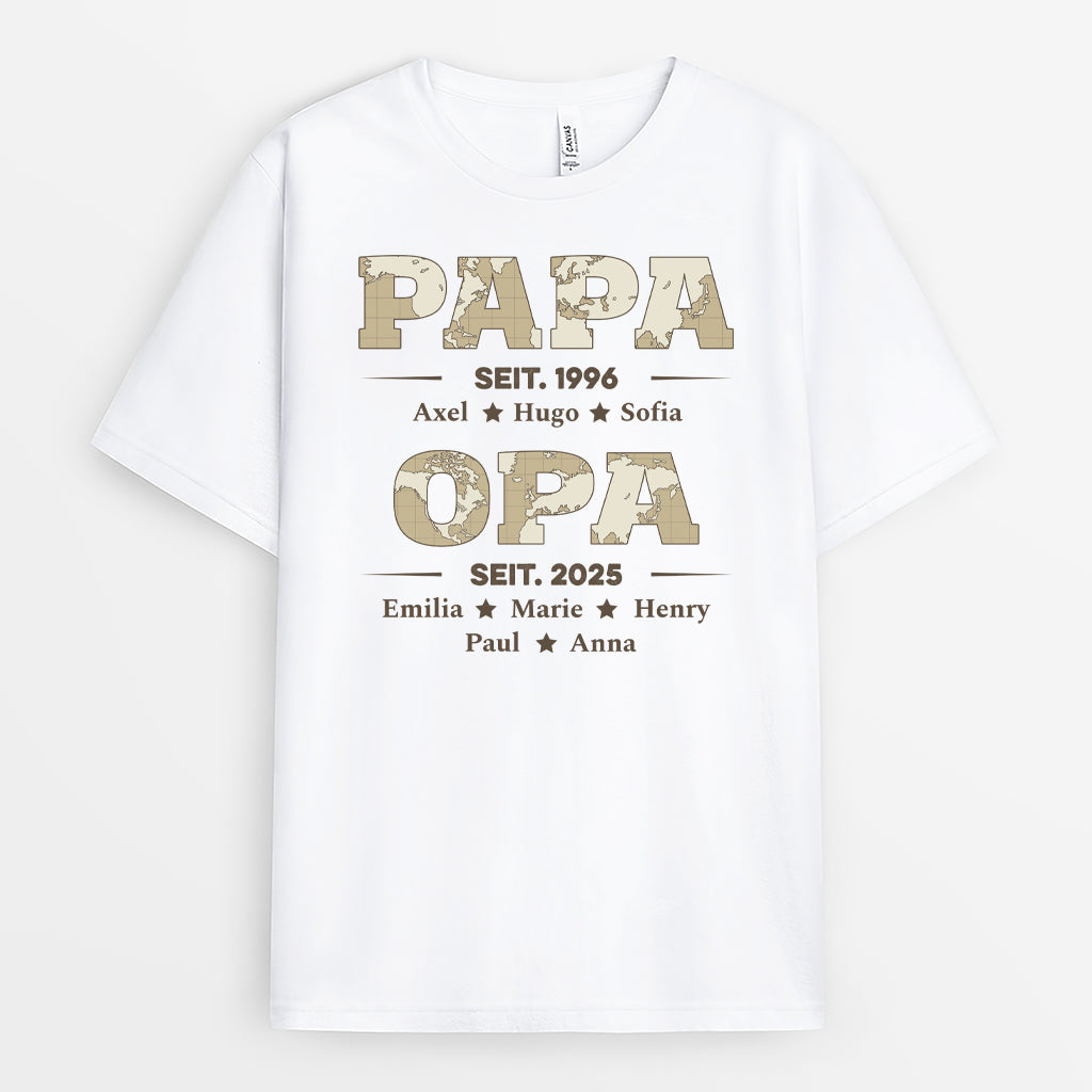 Opa Papa Seit Weltkarten - Personalisiertes Geschenk | Weißes T Shirt Papa/Opa