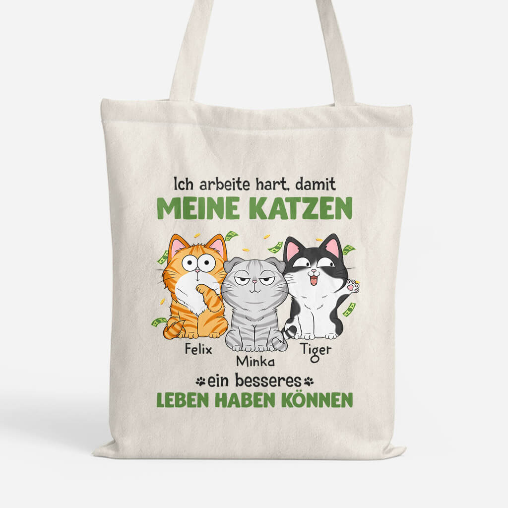 Ich arbeite hart,damit meine Katze ein besseres Leben haben kann - Personalisiertes Geschenk | Tragetasche für Katzenliebhaber