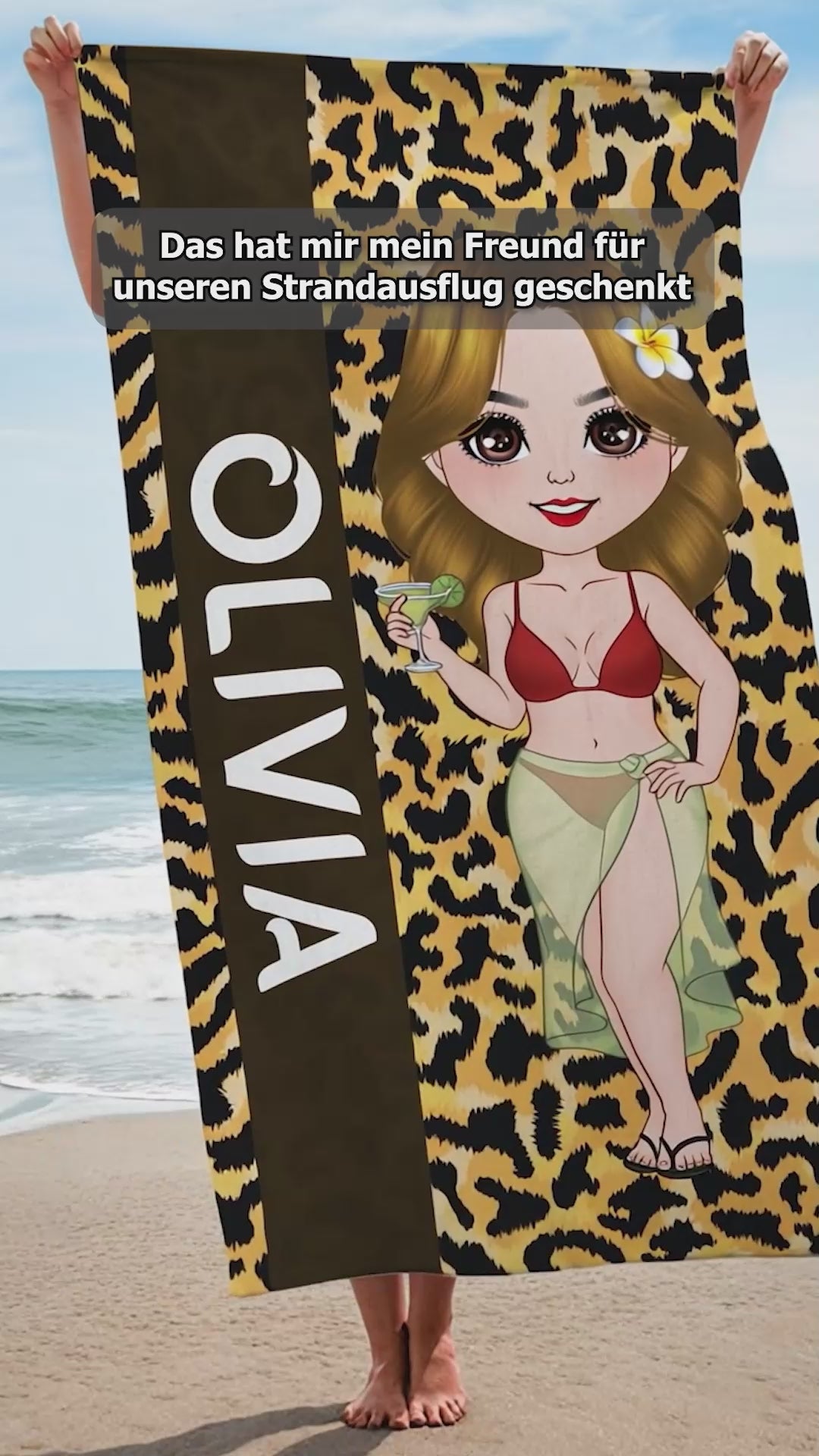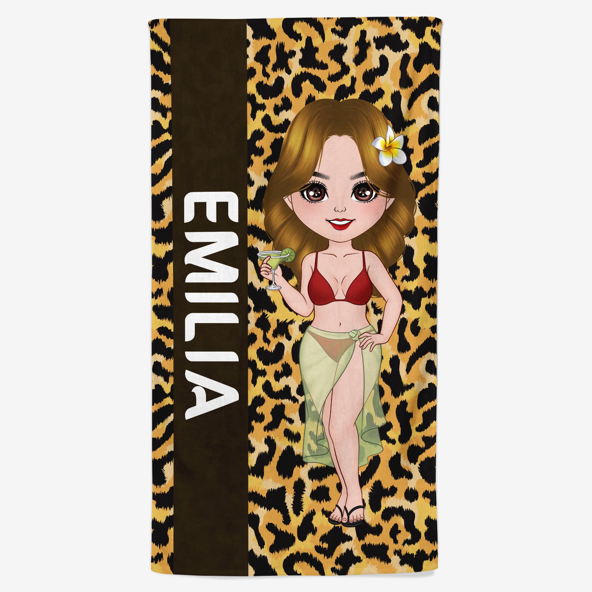 Chibi Frau Leopardenmuster - Personalisiertes Geschenk | Strandtuch für Frauen