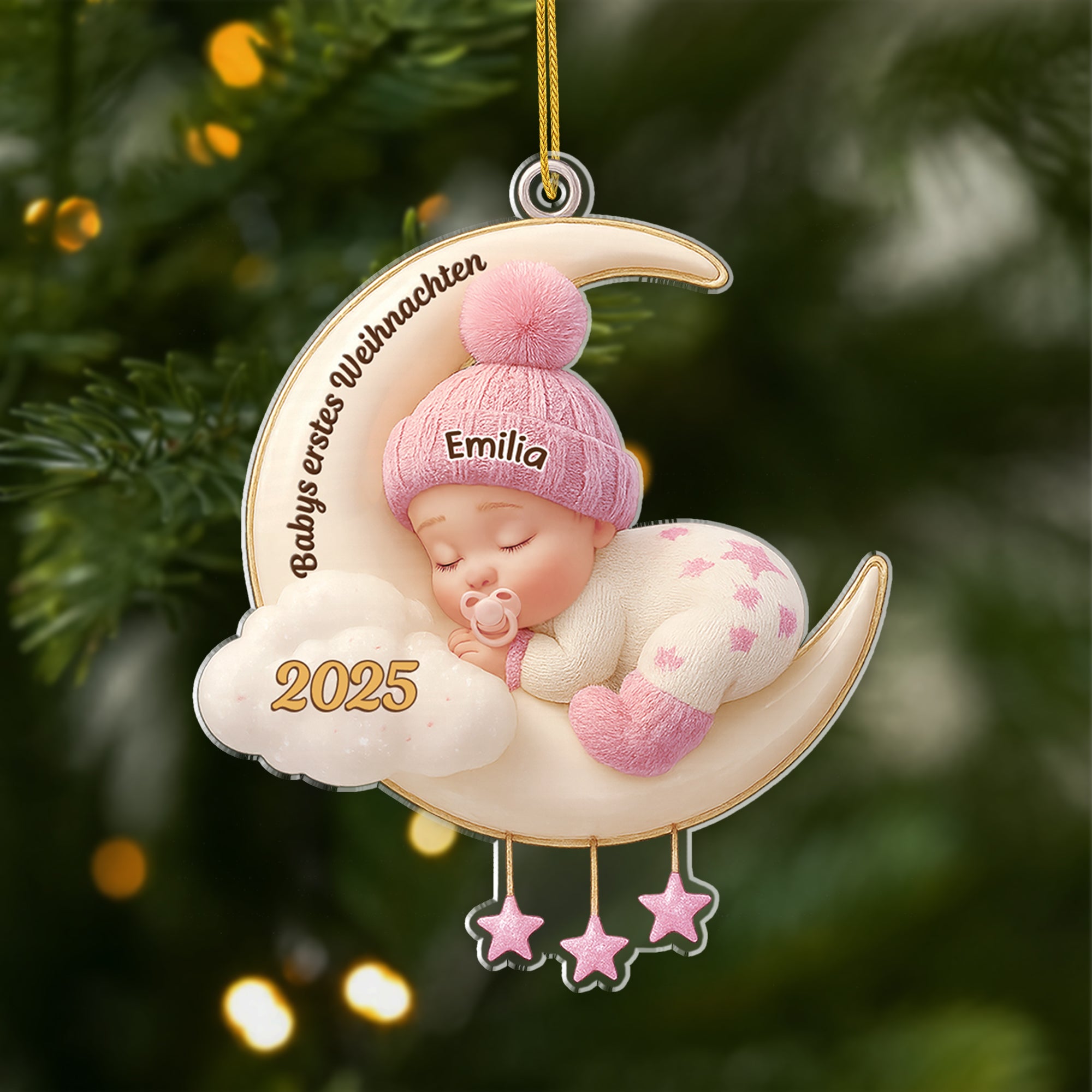 [3D-Druck-Effekt] Babys Erstes Weihnachten - Personalisierte Geburtsgeschenke | Acryl Weihnachtsschmuck Mond