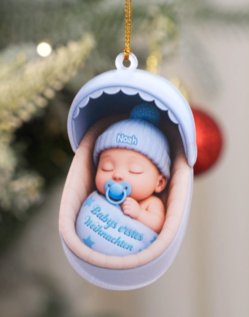 [3D-Druck-Effekt] Babys Erstes Weihnachten Stubenwagen - Personalisierte Weihnachtsgeschenke | Acryl Weihnachtsschmuck
