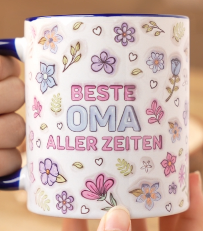 Für Tassen mit 3D-Effekt: Die Oberfläche der Tasse ist völlig glatt, der 3D-Effekt ist nur aufgedruckt und nicht tatsächlich erhaben oder eingraviert. Farben und Schattierungen können variieren, das tatsächliche Produkt kann leicht von der Bildschirmdarstellung abweichen.