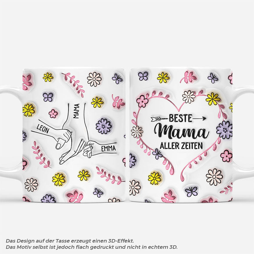 [3D-Druck-Effekt] Beste Mama Aller Zeiten - Personalisiertes Geschenk | Mama & Oma Tasse Blumen