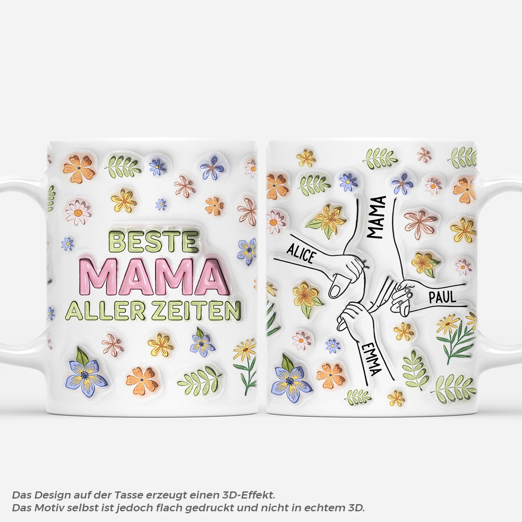 [3D-Druck-Effekt] Beste Mama Aller Zeiten - Personalisiertes Geschenk | Tasse Mama
