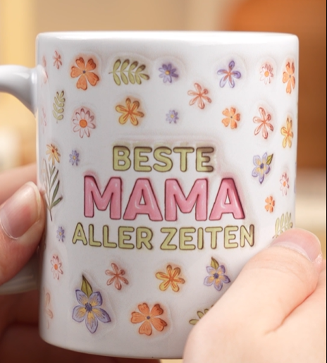Für Tassen mit 3D-Effekt: Die Oberfläche der Tasse ist völlig glatt, der 3D-Effekt ist nur aufgedruckt und nicht tatsächlich erhaben oder eingraviert. Farben und Schattierungen können variieren, das tatsächliche Produkt kann leicht von der Bildschirmdarstellung abweichen.