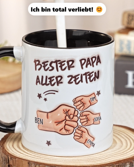 [3D-Druck-Effekt] Bester Papa Aller Zeiten Faust - Personalisiertes Geschenk | Tasse Papa
