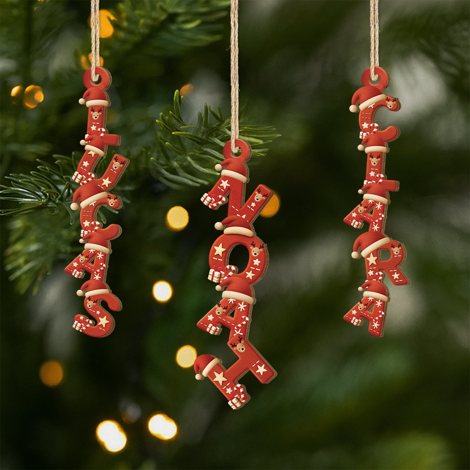 [3D-Druck-Effekt] Buchstaben Weihnachtsmütze - Personalisierte Weihnachtsgeschenke | 1-Schicht-Holz-Ornamente