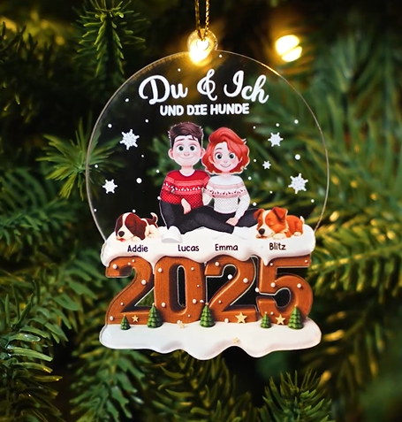 [3D-Druck-Effekt] Du & Ich Und Die Hunde - Personalisierte Geschenke Paare | Weihnachtsschmuck Acryl