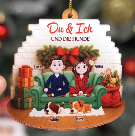 [3D-Druck-Effekt] Du & Ich Und Die Hunde - Personalisierte Paar Geschenke | Acryl Weihnachtsschmuck