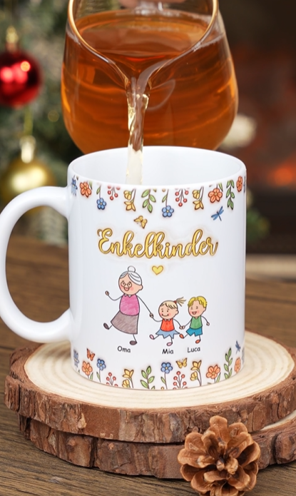 [3D-Druck-Effekt] Enkelkinder - Personalisierte Geschenke Oma & Opa | Tasse