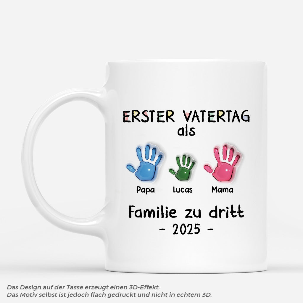 [3D-Druck-Effekt] Erster Vatertag Als Familie Zu Handdruck - Personalisiertes Geschenk | Tasse Papa