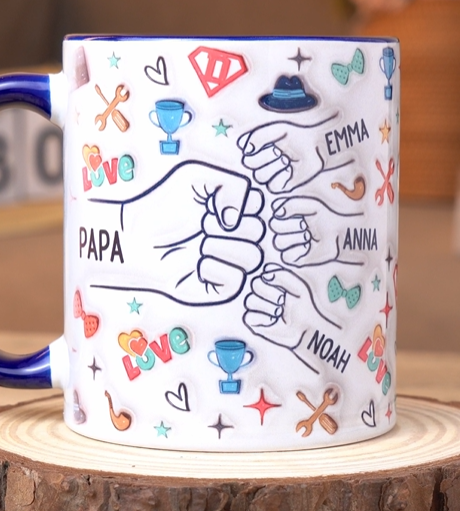 [3D-Druck-Effekt] Faustgruß Papa Und Kinder - Personalisiertes Geschenk | Papa Tasse