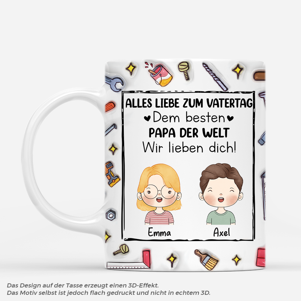 [3D-Druck-Effekt] Frohen Vatertag Werkzeug - Personalisiertes Geschenk | Tasse Papa