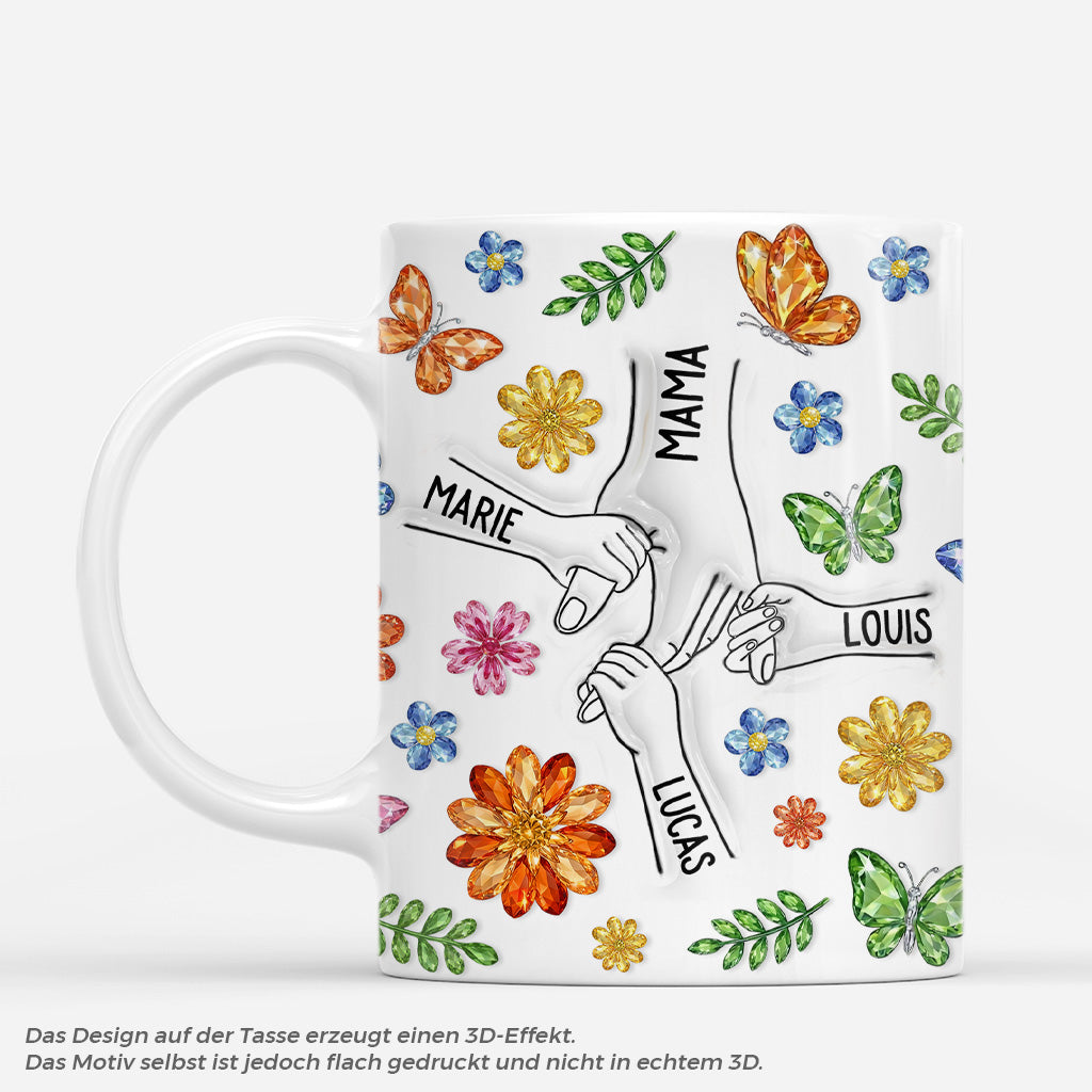 [3D-Druck-Effekt] Hand In Hand Glitzersteine - Personalisiertes Geschenk | Mama & Oma Tasse