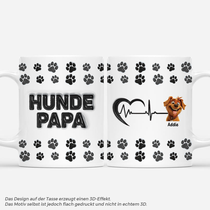 [3D-Druck-Effekt] Hund Pfotenabdrücke Elektrokardiogramm - Personalisiertes Geschenk | Tassen Hund