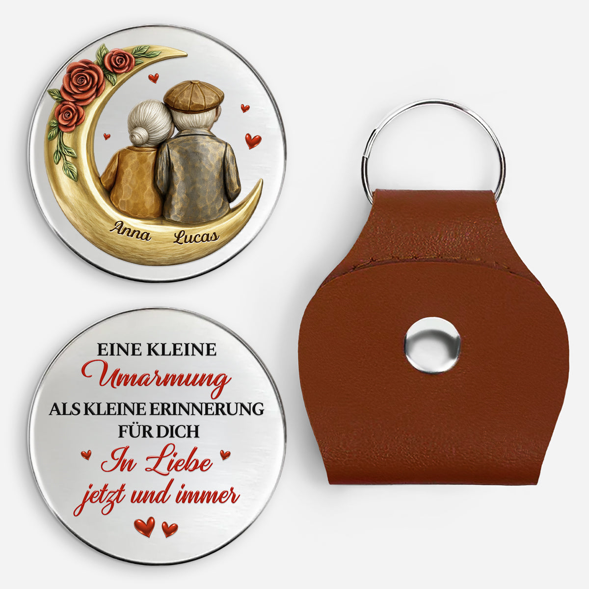 - Personalisierter Leder-Pocket Hug: Dieser charmante Begleiter besteht aus einem edlen PU-Leder-Etui im praktischen Schlüsselanhänger-Design. Im Inneren verbirgt sich ein runder Edelstahl-Token, der beidseitig mit Namen, Botschaften oder individuellen Designs bedruckt werden kann – ein persönliches Geschenk, das von Herzen kommt.