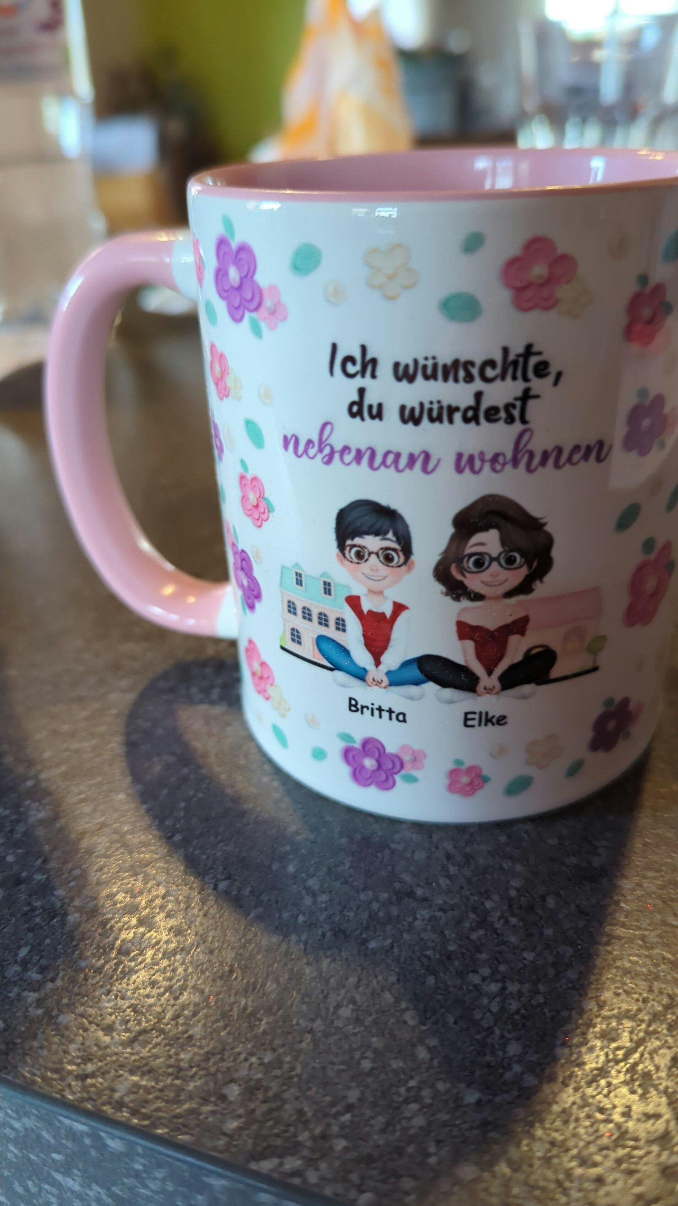 [3D-Druck-Effekt] Ich Wünschte Du Würdest Nebenan Wohnen Blumen Cartoon - Personalisierte Geschenke Beste Freundin/Schwester | Tassen