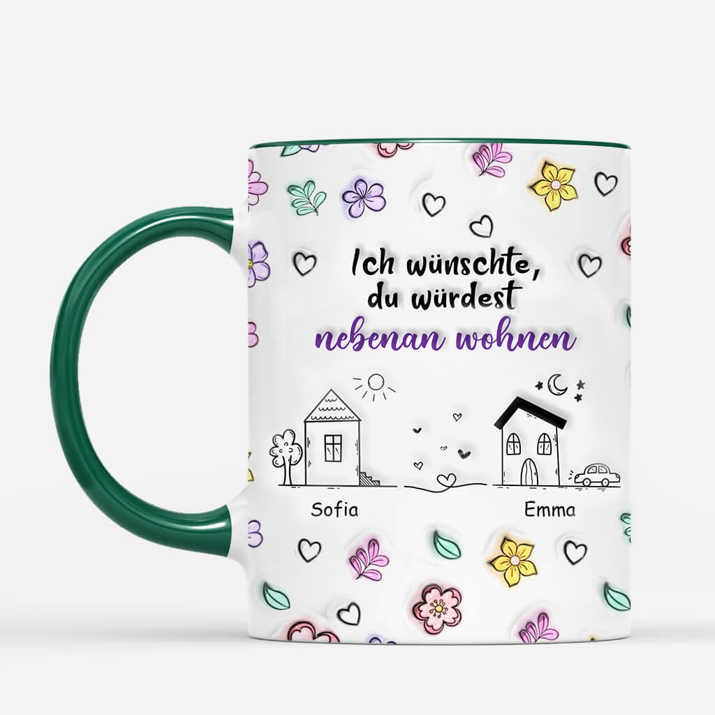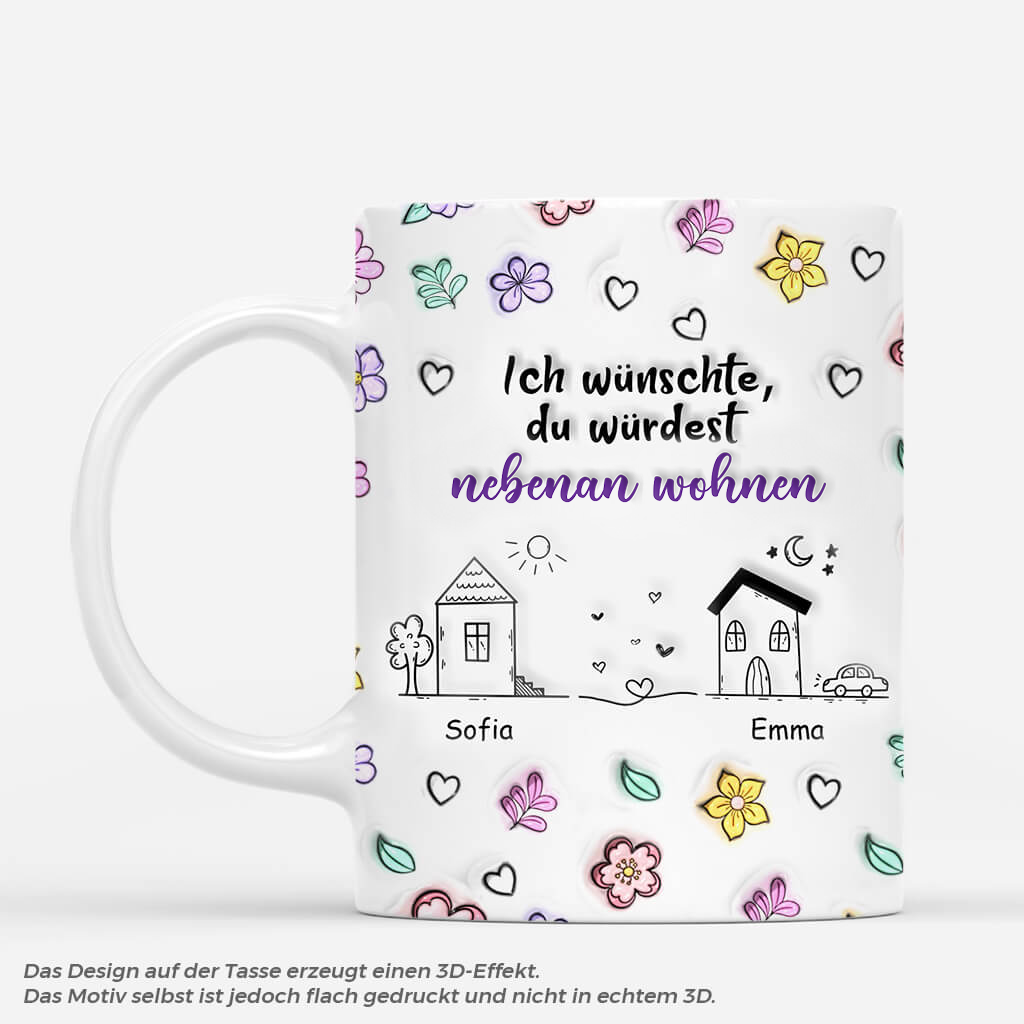 [3D-Druck-Effekt] Ich Wünschte Wir Würden Näher Wohnen Blumen - Personalisierte Tasse für Beste Freunde