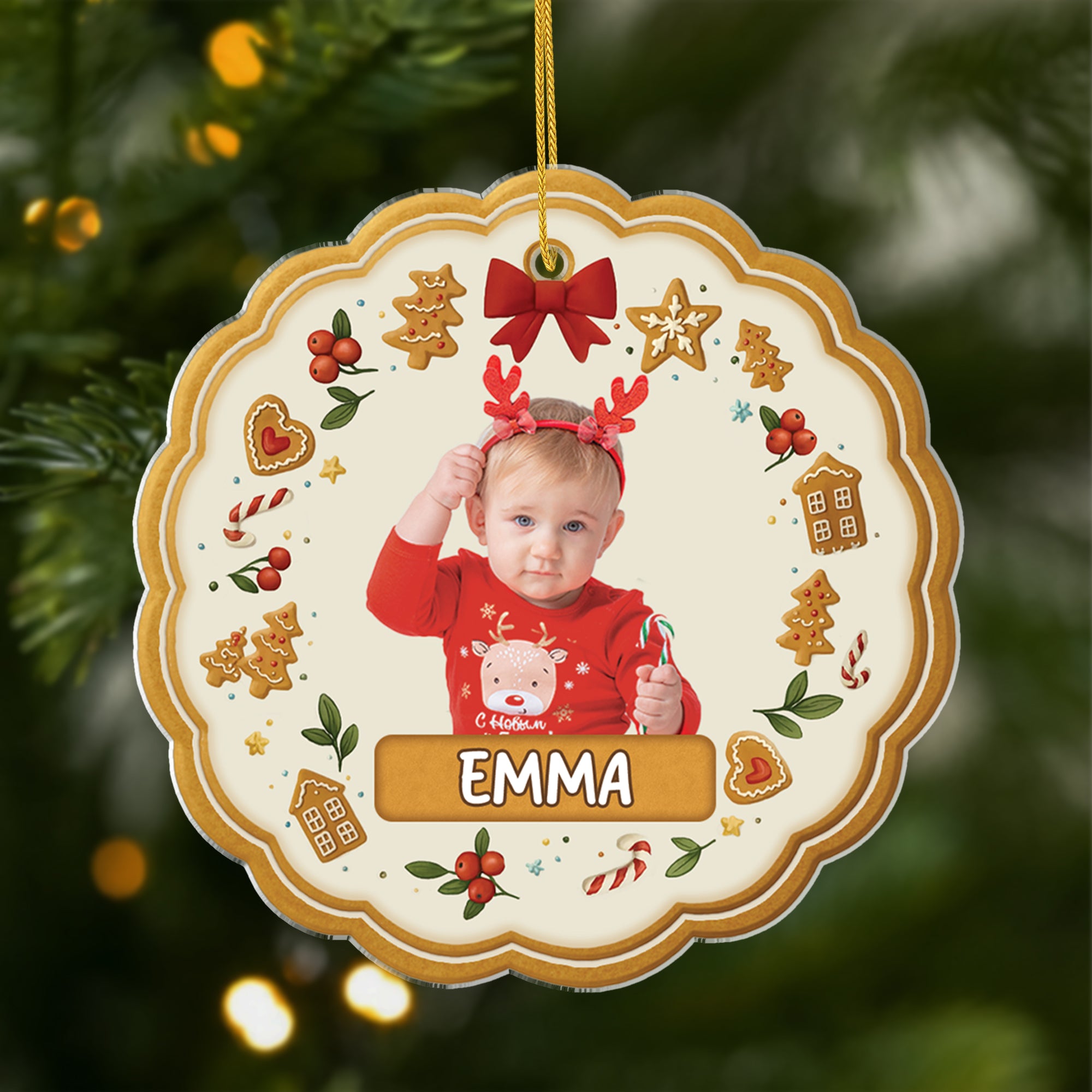 [3D-Druck-Effekt] Lebkuchen Bild Des Kindes - Personalisierte Geschenke Foto | Acryl Weihnachtsschmuck