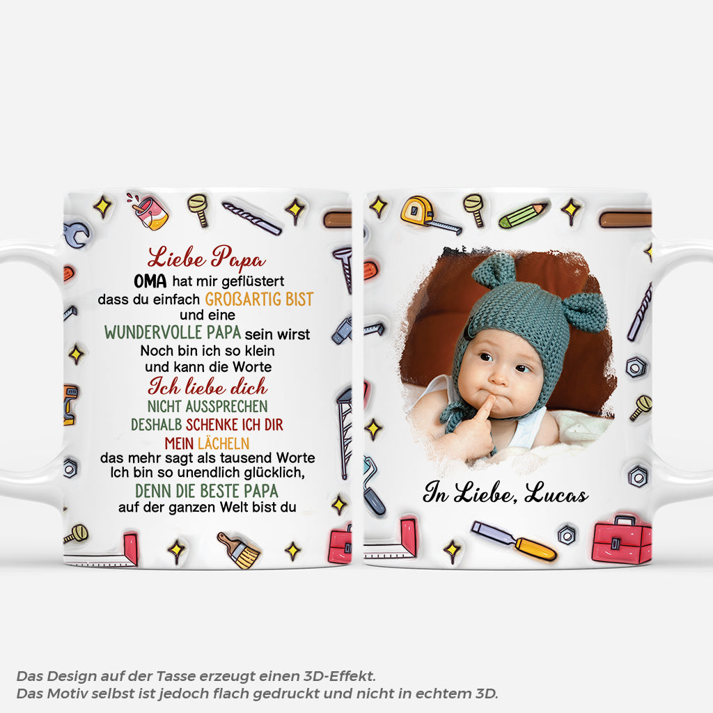 [3D-Druck-Effekt] Lieber Papa Baby Werkzeug - Personalisiertes Geschenk | Tasse Papa mit Foto