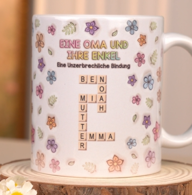 [3D-Druck-Effekt] Mama & Kinder Eine Unzerbrechliche Bindung Kreuzworträtsel - Personalisiertes Geschenk | Tasse für Mamas