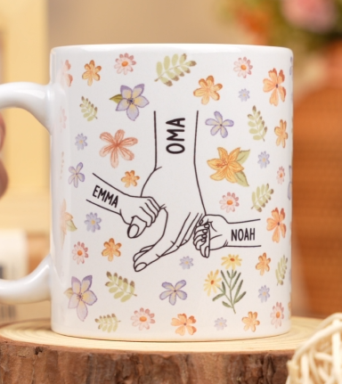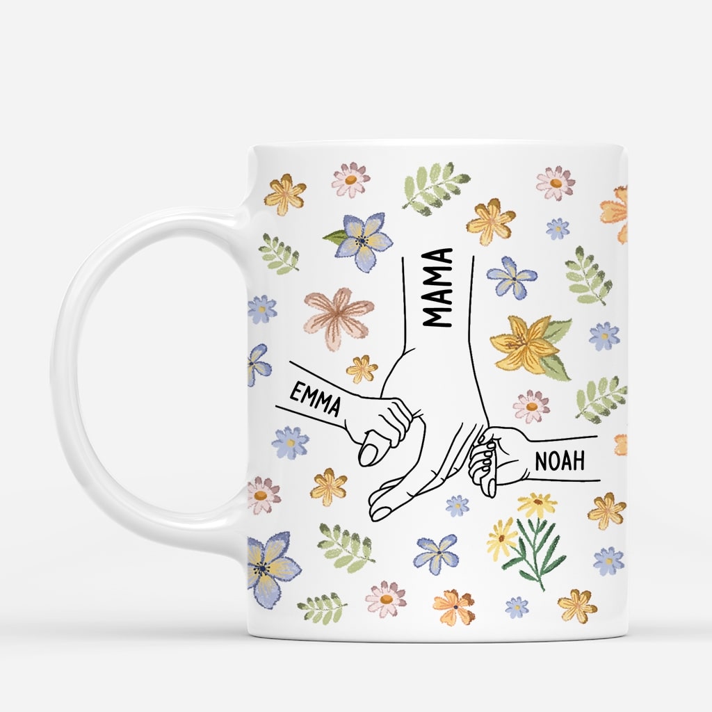 [3D-Druck-Effekt] Mama & Kinder Pflanzen - Personalisiertes Geschenk | Tasse Mama