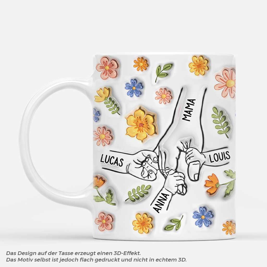 [3D-Druck-Effekt] Mama Und Kinder Blumen - Personalisierte Geschenke Für Oma & Mama | Tasse