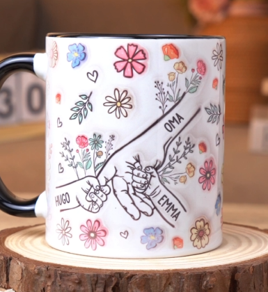 [3D-Druck-Effekt] Mama Und Kinder Bunte Blumen - Personalisiertes Geschenk | Tasse Mama