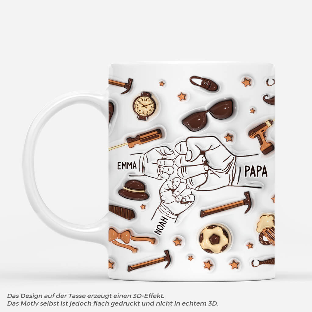 [3D-Druck-Effekt] Papa & Kinder Hauptfarbe Ist Braun - Personalisiertes Geschenk | Tasse Papa