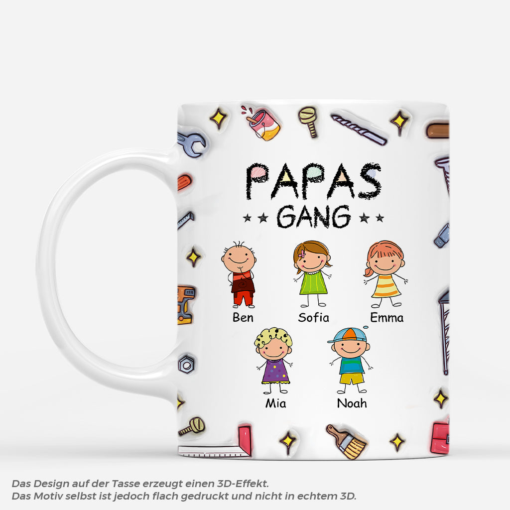 [3D-Druck-Effekt] Papas Gang Kinder Werkzeuge Strichmännchen - Personalisiertes Geschenk | Tasse Papa