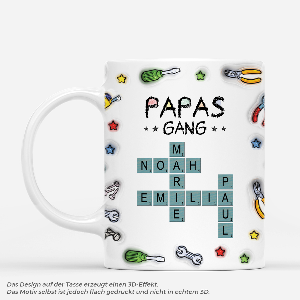 [3D-Druck-Effekt] Papas Gang Kreuzworträtsel Werkzeug Buntstifte - Personalisiertes Geschenk | Tasse Papa