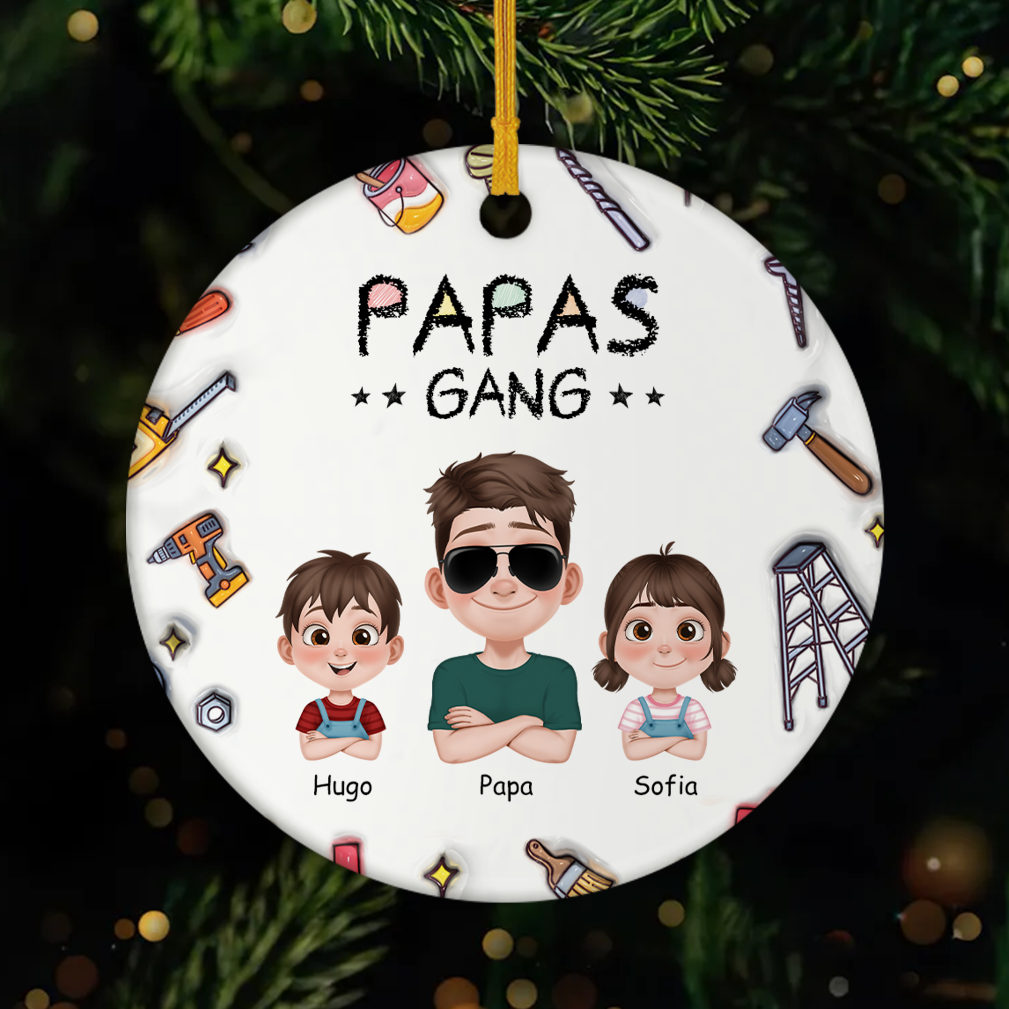 [3D-Druck-Effekt] Papas Gang Werkzeug Cartoon - Personalisiertes Geschenk | Keramik Ornamente Papa
