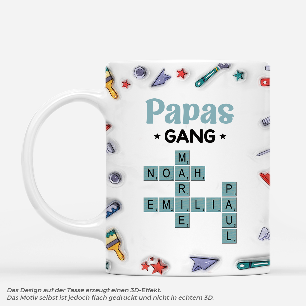 [3D-Druck-Effekt] Papas Gang Werkzeug Kreuzworträtsel - Personalisiertes Geschenk | Tasse Papa