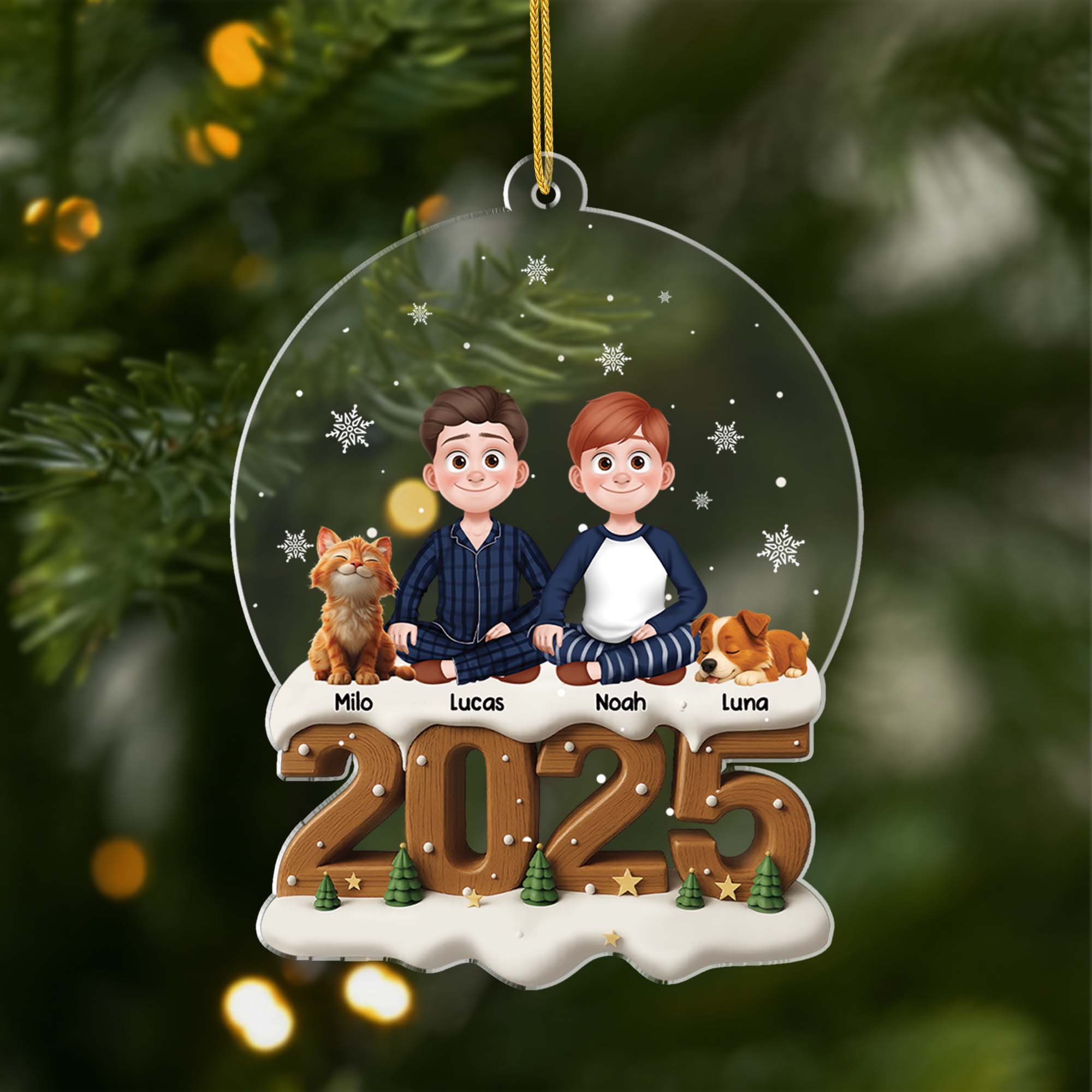 [3D-Druck-Effekt] Queeres Paar Mit Hund Und Katze - Personalisierte Geschenke Familie | Acryl Weihnachtsschmuck