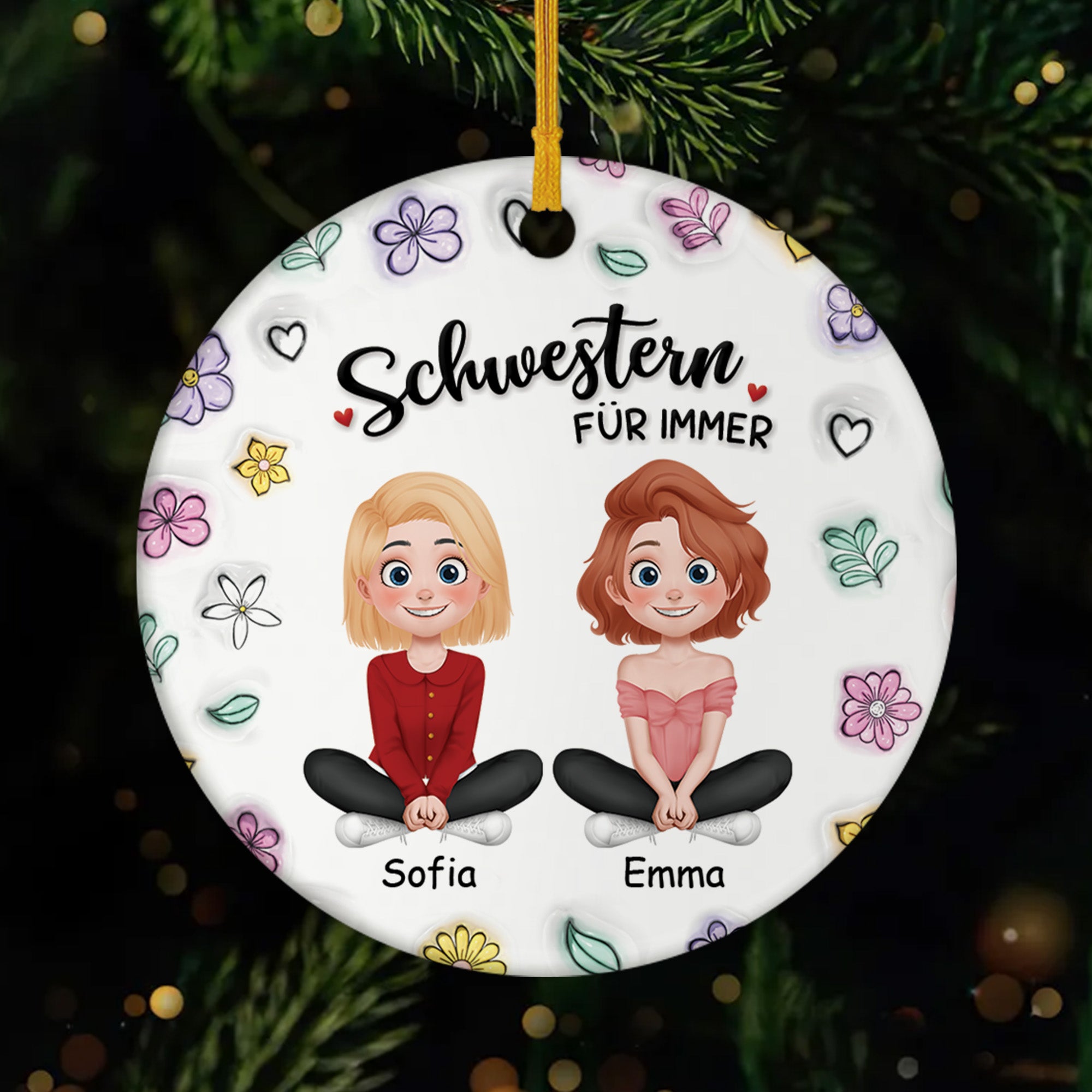 [3D-Druck-Effekt] Schwestern/Beste Freundinnen Für Immer - Personalisiertes Geschenk | Keramik Ornamente