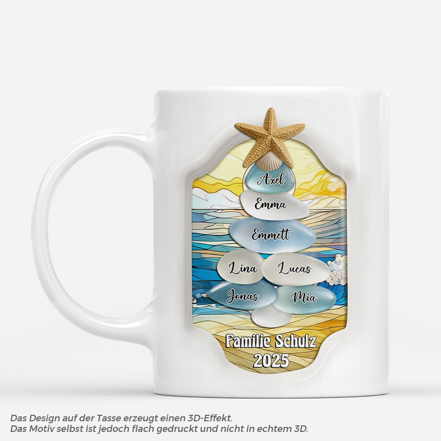 [3D-Druck-Effekt] Weihnachtsbaum Aus Steinen Und Muscheln - Personalisierte Weihnachtsgeschenke Familie | Tasse