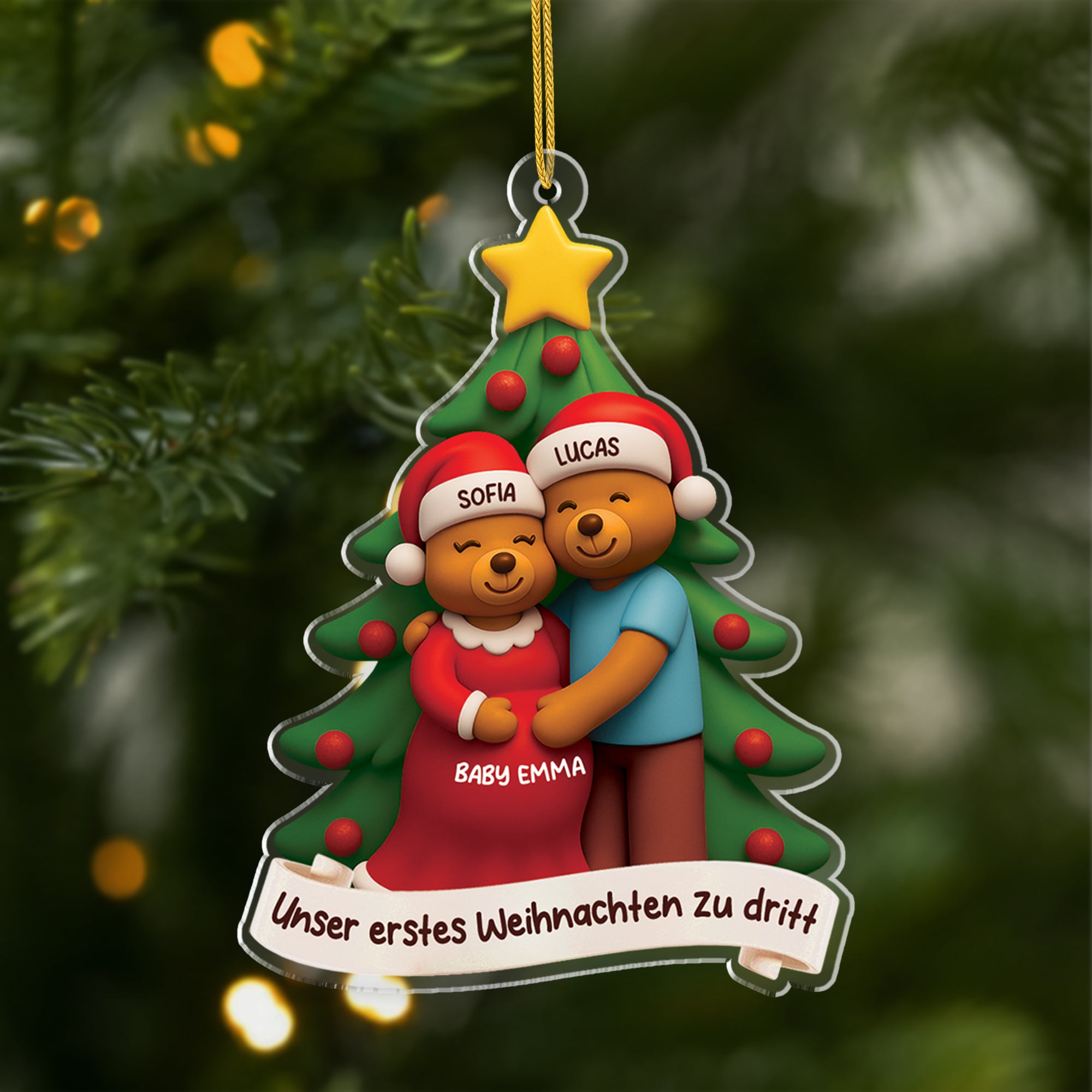 [3D-Druck-Effekt] Wir Sind Schwanger - Personalisiertes Geschenk | Acryl Weihnachtsschmuck Werdende Mama Und Papa Bär