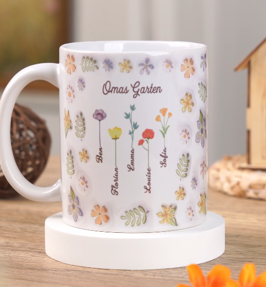 3D Inflated Effekt Omas/Mamas Garten - Personalisiertes Geschenk | Tasse für Frauen