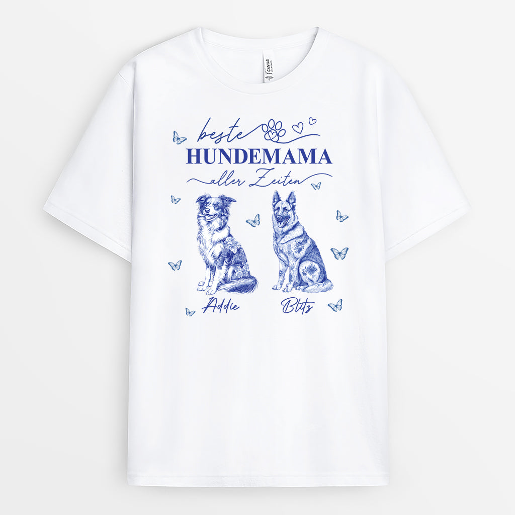 Beste Hundemama Aller Zeiten Blue Toile Fabric - Personalisiertes Geschenk | Hunde T-shirts