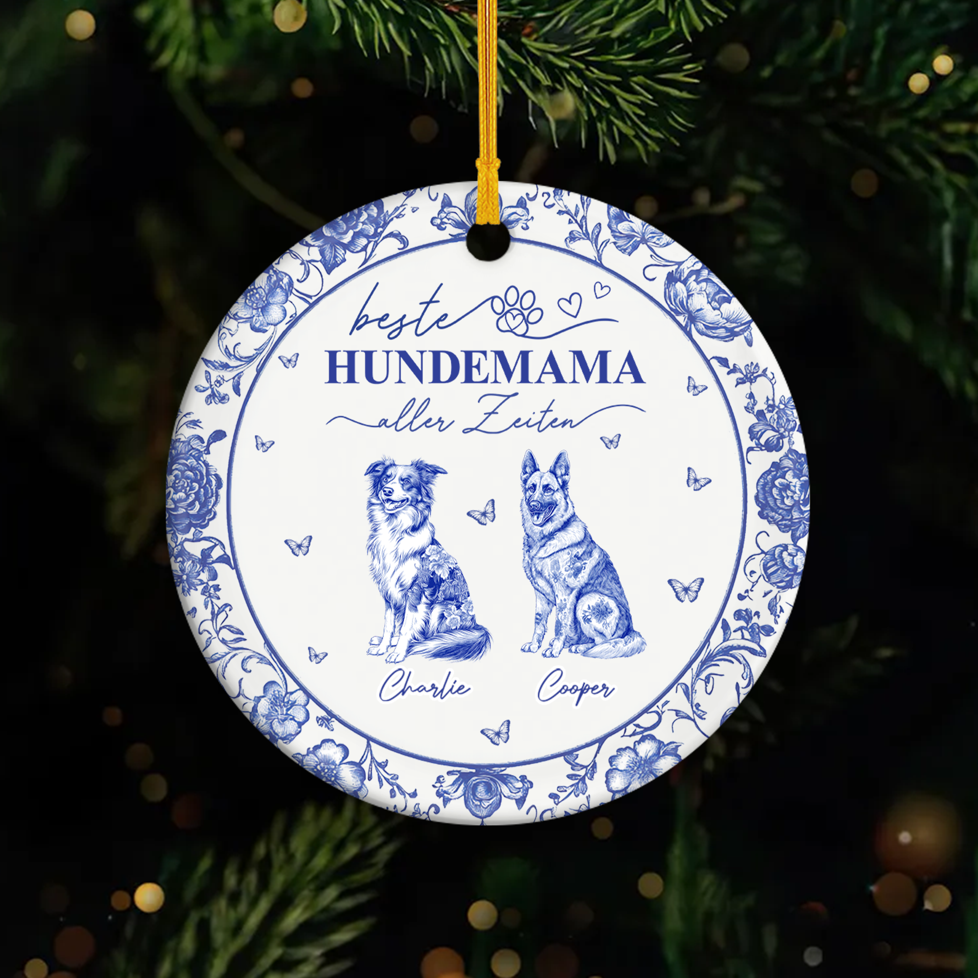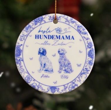 Beste Hundemama Aller Zeiten Toile De Jouy - Personalisiertes Geschenk | Keramik Ornamente Hunde