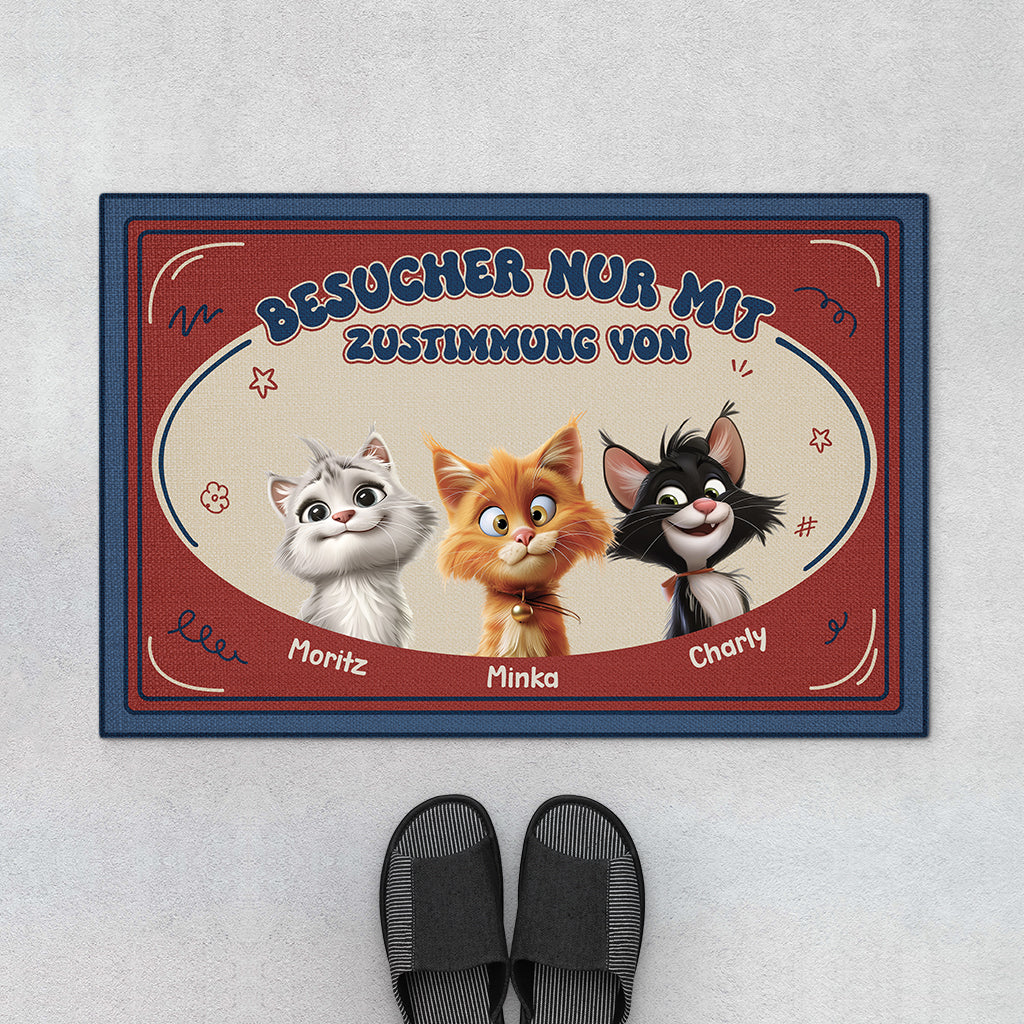 Besucher Nur Mit Genehmigung Der Katze Cartoon - Personalisierte Geschenke Katze | Fußmatte