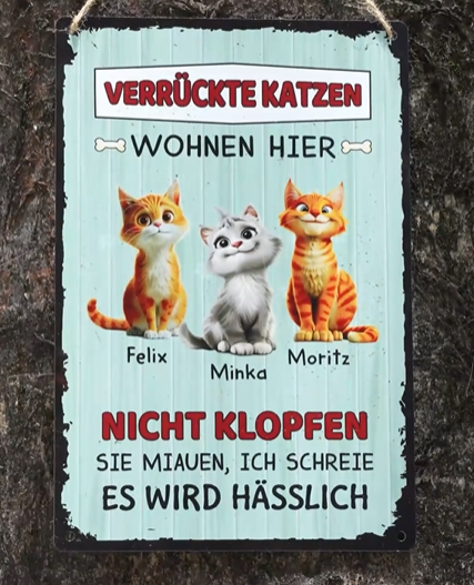 Bitte Nicht Klopfen Katzen Werden Miauen - Personalisiertes Geschenk | Türschild Katze