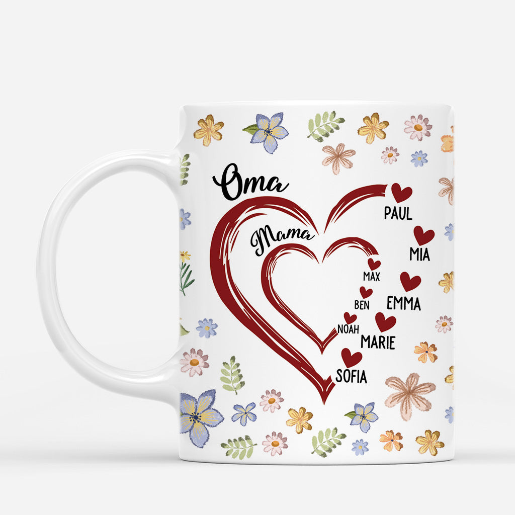 Blumen Herzen Oma - Personalisiertes Geschenk | Tasse Oma