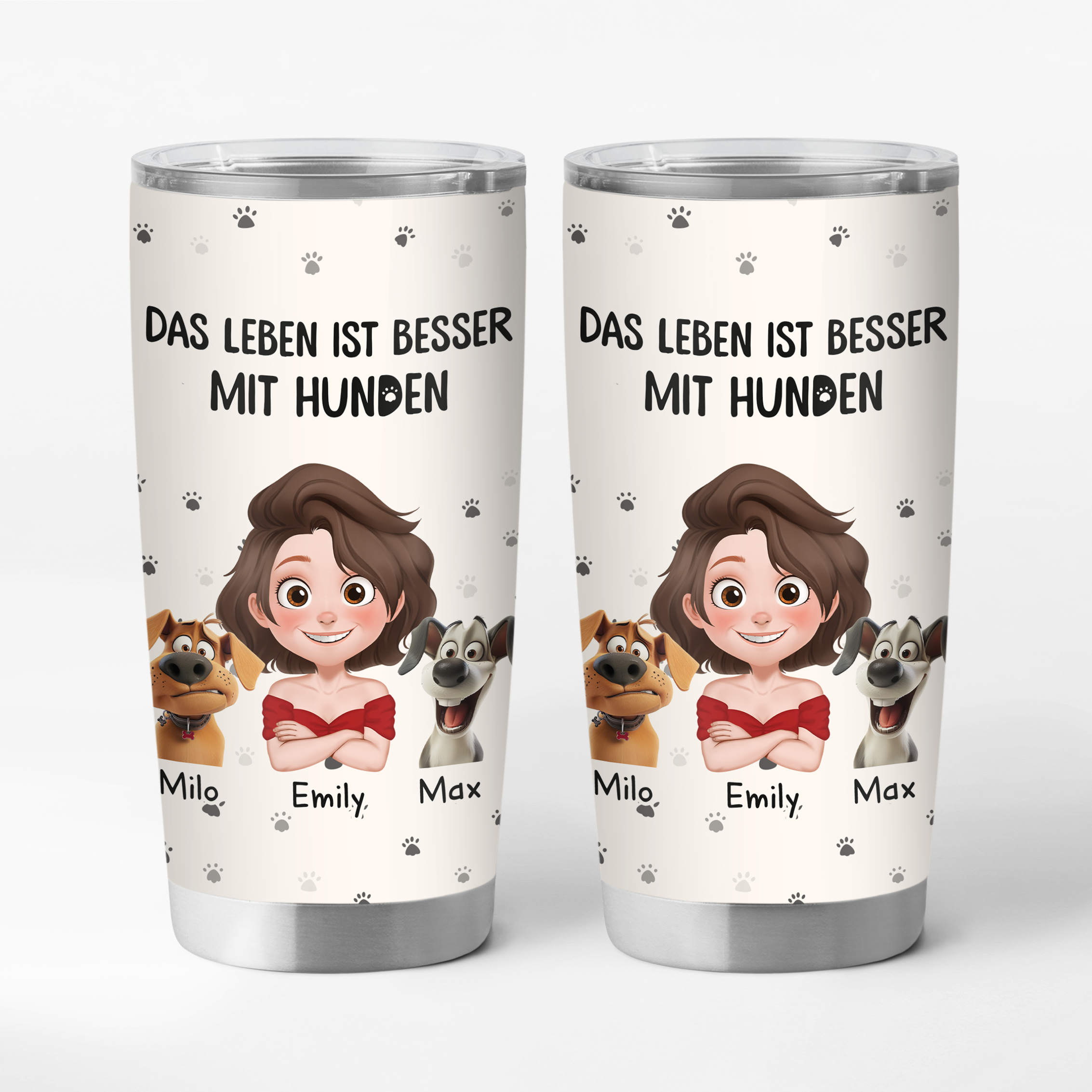 Das Leben Ist Besser Mit Hunden - Personalisiertes Geschenk | Thermobecher 20oz für Hundeliebhaber