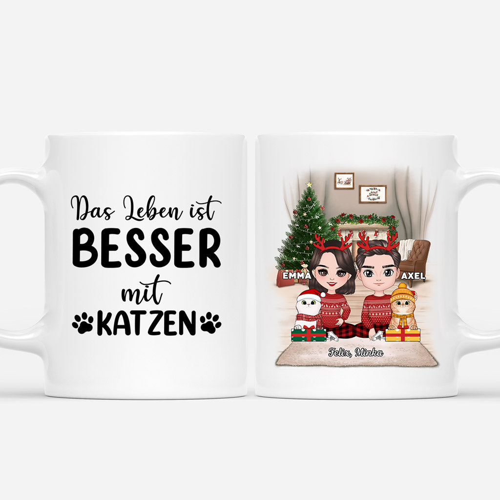 Das Leben Ist Besser Mit Katzen - Personalisierte Geschenke | Tasse für Katzenbesitzer Weihnachten