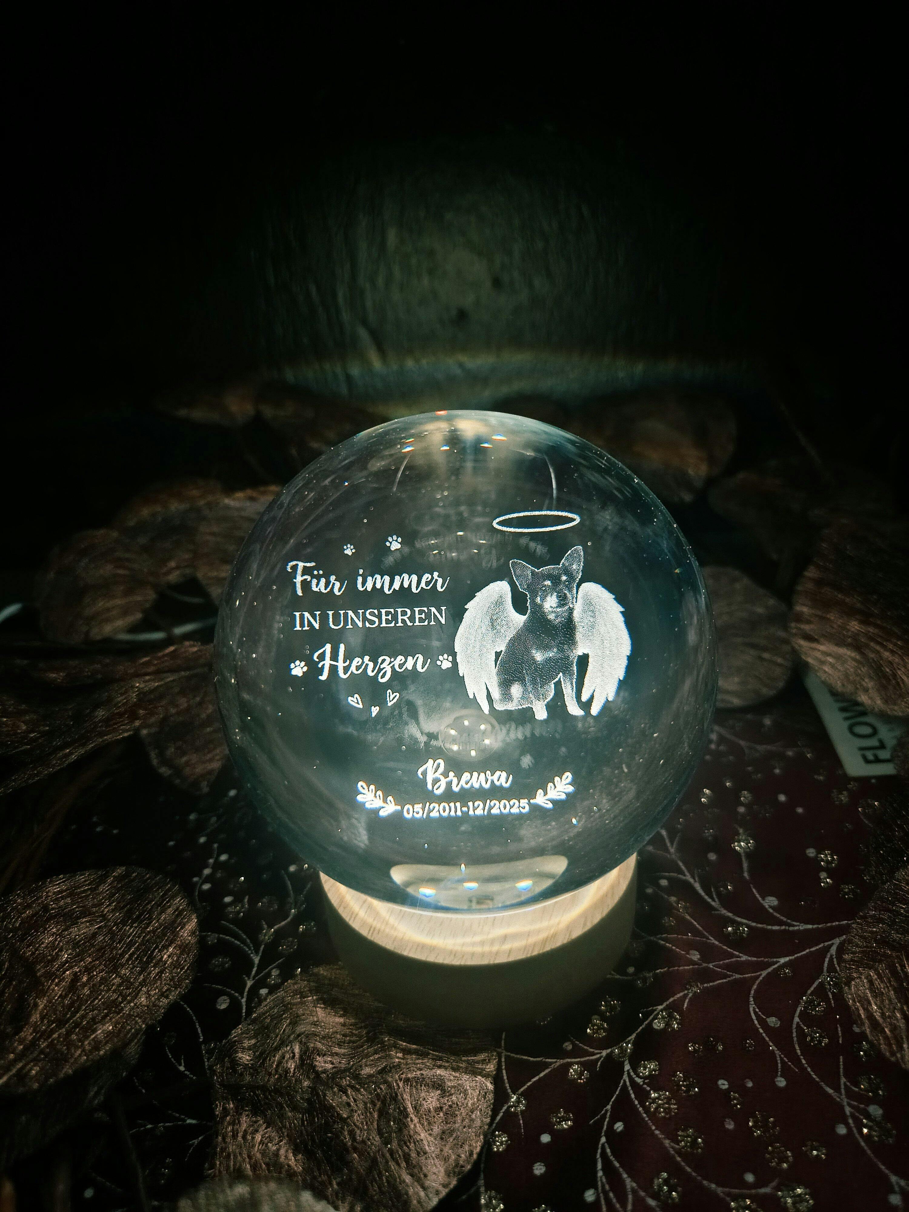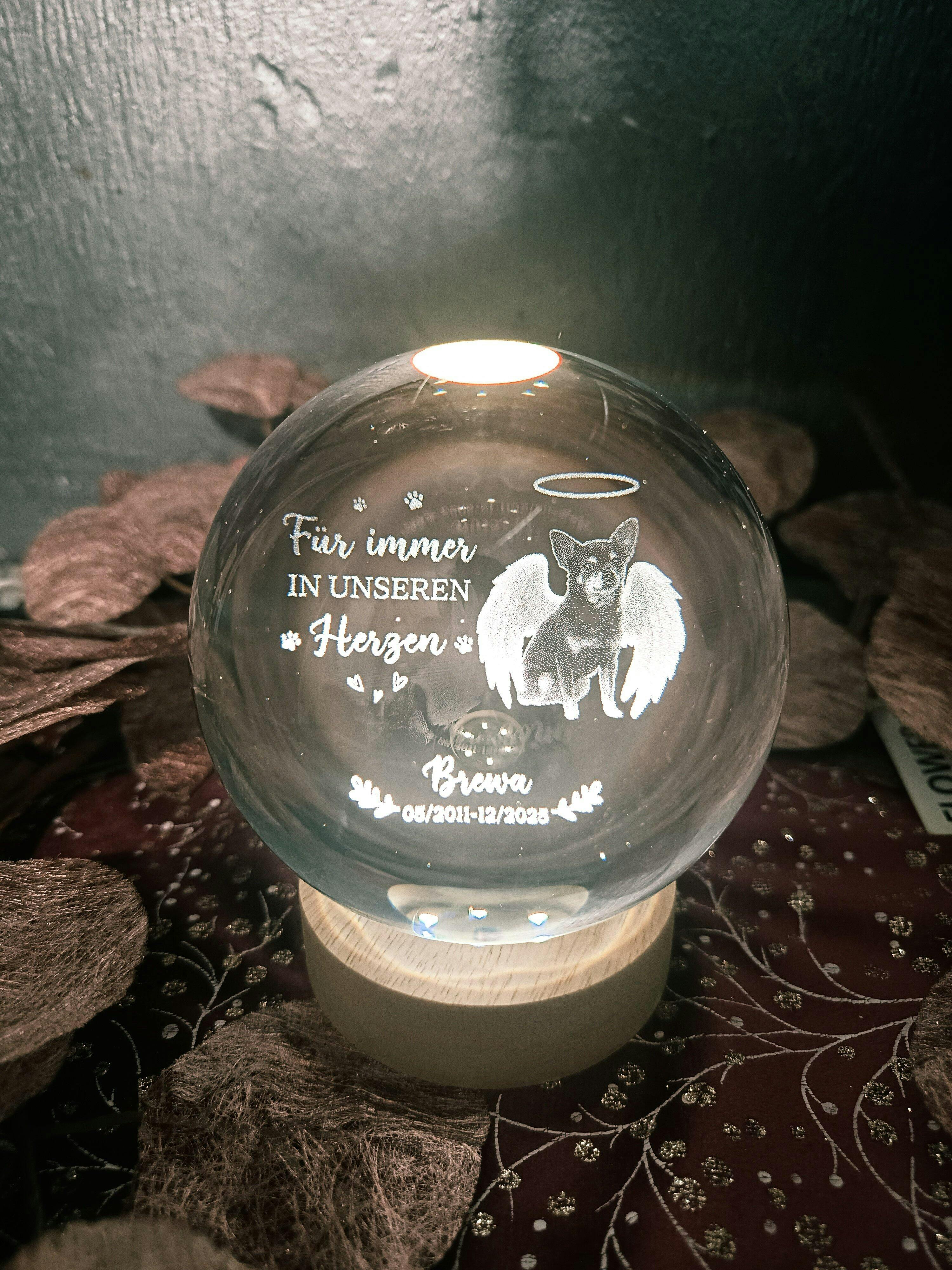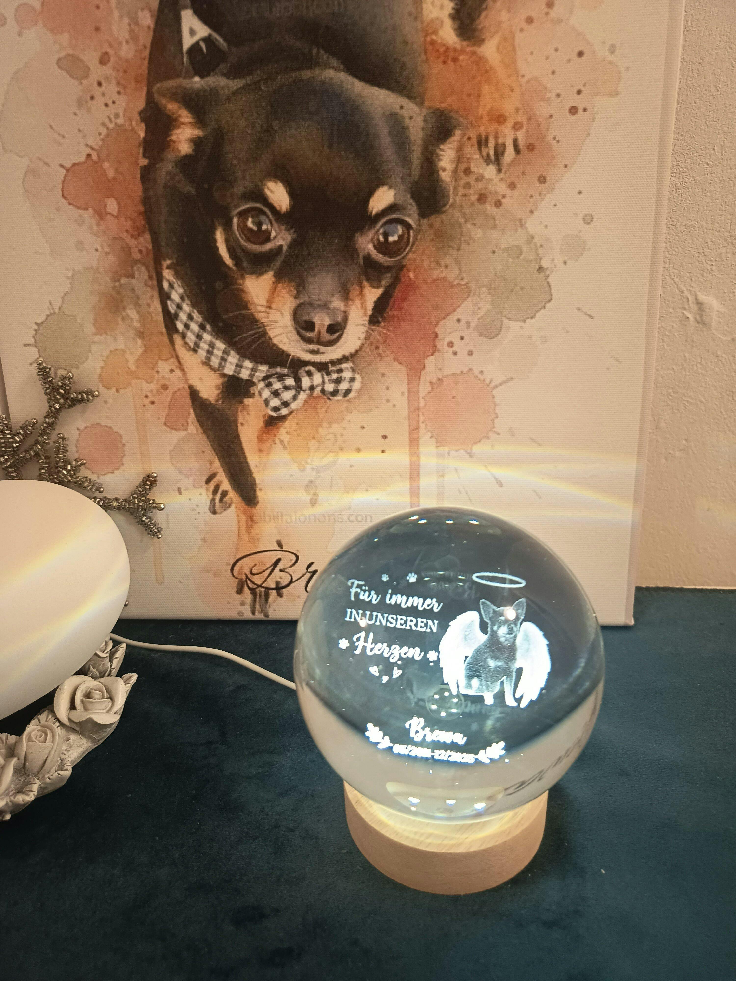 Der Schmerz Des Abschieds Zeigt Wie Wertvoll Es War - Personalisierte Trauergeschenke | Kristallkugel Hund/Katze Mit Foto
